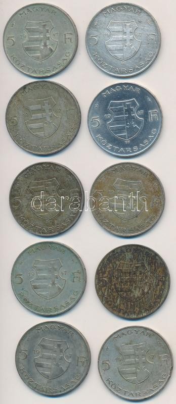 1947. 5Ft Ag "Kossuth" (10x) T:2-,3 https://www.darabanth.com/de/260-Fernauktion/260.0/Numismatik/Ungarische-Munzen-und-Munzen-mit-ungarischem-Munzzeichen~300007/1947-5Ft-Ag-Kossuth-10x-T2-3~II1287782