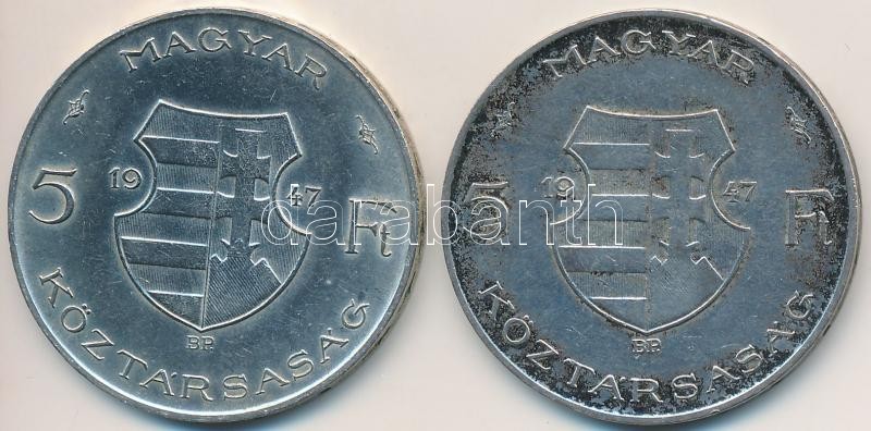 1947. 5Ft Ag "Kossuth" (2x) T:2-,3 https://www.darabanth.com/de/260-Fernauktion/260.0/Numismatik/Ungarische-Munzen-und-Munzen-mit-ungarischem-Munzzeichen~300007/1947-5Ft-Ag-Kossuth-2x-T2-3~II1280320