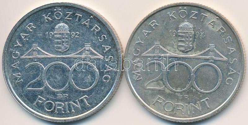 Beschreibung: 1992-1994. 200Ft Ag (2x) "MNB" + "Deák" T:2,2-