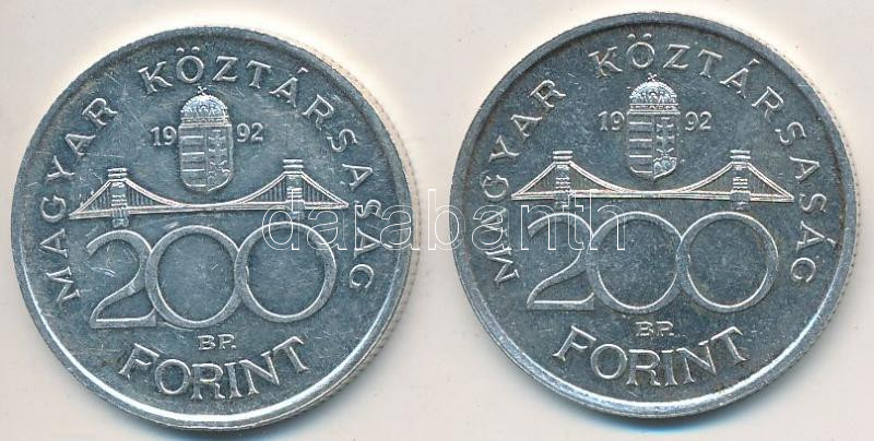1992. 200Ft Ag "MNB" (2x) T:2 https://www.darabanth.com/de/260-Fernauktion/260.0/Numismatik/Ungarische-Munzen-und-Munzen-mit-ungarischem-Munzzeichen~300007/1992-200Ft-Ag-MNB-2x-T2~II1285964