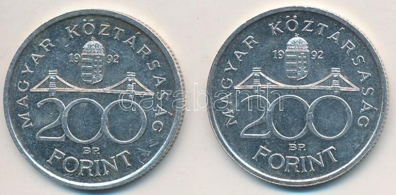 1992. 200Ft Ag "MNB" (2x) T:2 https://www.darabanth.com/de/260-Fernauktion/260.0/Numismatik/Ungarische-Munzen-und-Munzen-mit-ungarischem-Munzzeichen~300007/1992-200Ft-Ag-MNB-2x-T2~II1286048