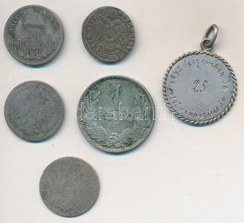 Vegyes: 6db-os magyar és osztrák vegyes kis ezüstpénz és medál tétel, ... https://www.darabanth.com/de/260-Fernauktion/260.0/Numismatik/Ungarische-Munzen-und-Munzen-mit-ungarischem-Munzzeichen~300007/Vegyes-6db-os-magyar-es-osztrak-vegyes-kis-ezustpenz-es-medal-tetel-kozte-1870KB-10kr-Ag-~II1239083