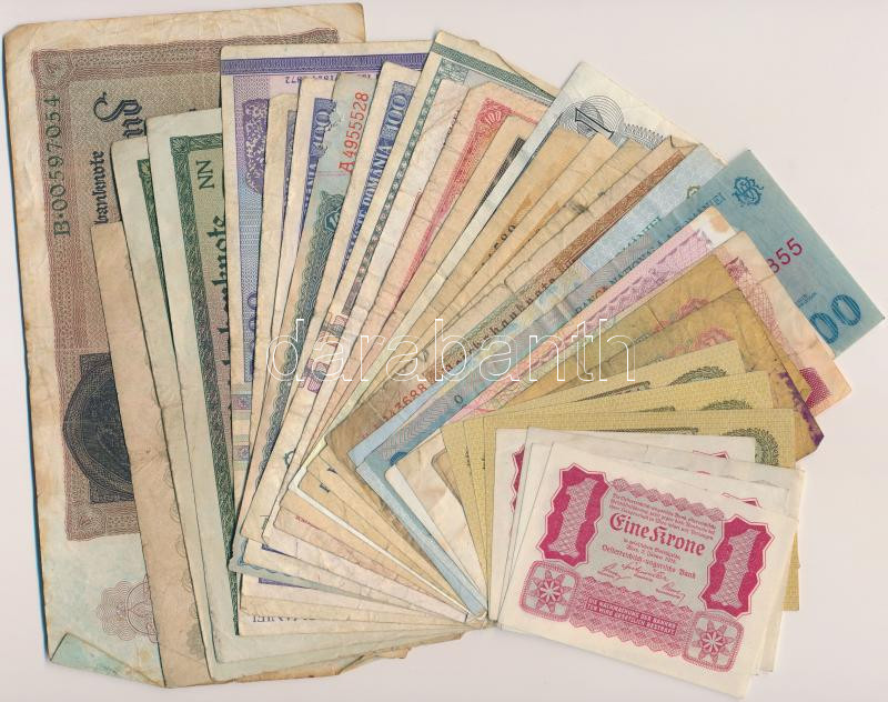30db-os vegyes külföldi bankjegy tétel, közte Ausztria, Csehszlovákia, Románia, Weimari Köztársaság T:vegyes