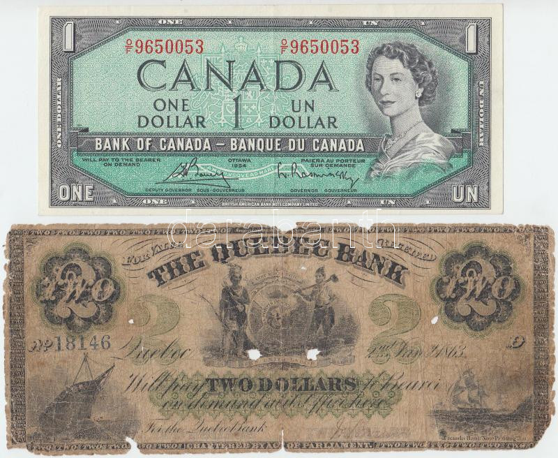Kanada / The Quebec Bank 1863. 2$ + 1972-1973. (1954) 1$ átalakított h... https://www.darabanth.com/de/260-Fernauktion/260.0/Numismatik/Weltweit-Banknoten~300013/Kanada-The-Quebec-Bank-1863-2USD-plus-1972-1973-1954-1USD-atalakitott-haj-Szign-Bouey-Rasminsky-~II1280817