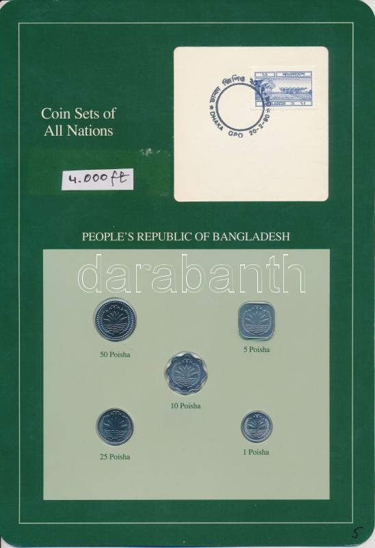 Bangladesh 1974-1984. 1 Poisha - 50 Poisha 5xdiff, "Coin Sets of All Nations" coin set on cardboard with stamp C:UNC