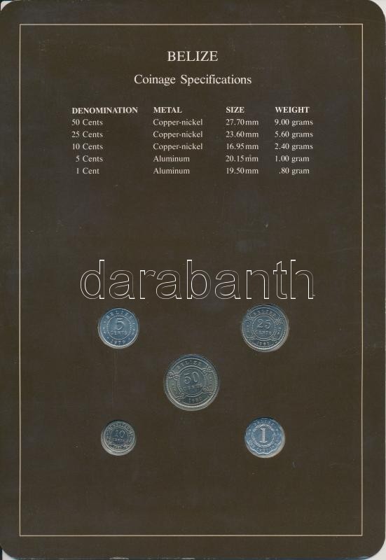 Belize 1979-1983. 1c - 50c 5xklf db, forgalmi szett felbélyegzett kart... https://www.darabanth.com/de/260-Fernauktion/260.0/Numismatik/Weltweit-Munzen~300020/Belize-1979-1983-1c--50c-5xklf-db-forgalmi-szett-felbelyegzett-kartonlapon-T1--Belize-1979-1983~II1284463