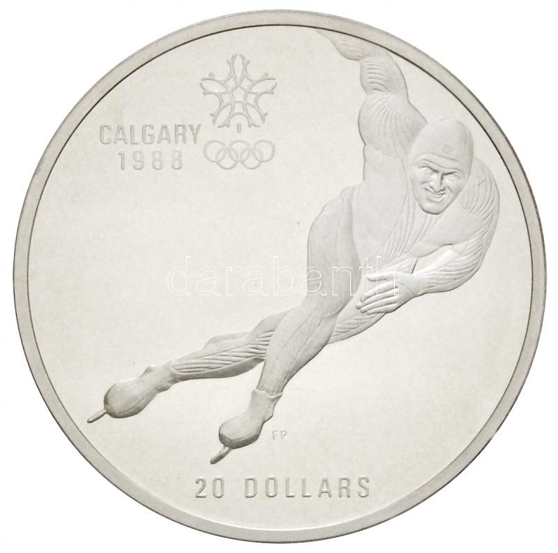 Kanada 1985. 20$ Ag "Téli olimpia-gyorskorcsolya" eredeti tokban T:PP