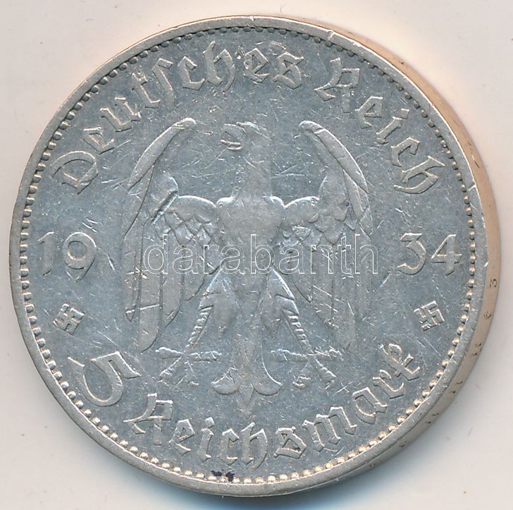 Német 3. Birodalom 1934E 5M Ag "Garnisonkirche" T:2,2- kis p... https://www.darabanth.com/de/260-Fernauktion/260.0/Numismatik/Weltweit-Munzen~300020/Nemet-3-Birodalom-1934E-5M-Ag-Garnisonkirche-T2-2-kis-ph--German-Third-Reich-1934E-5-Marks-Ag~II1281085
