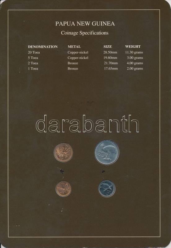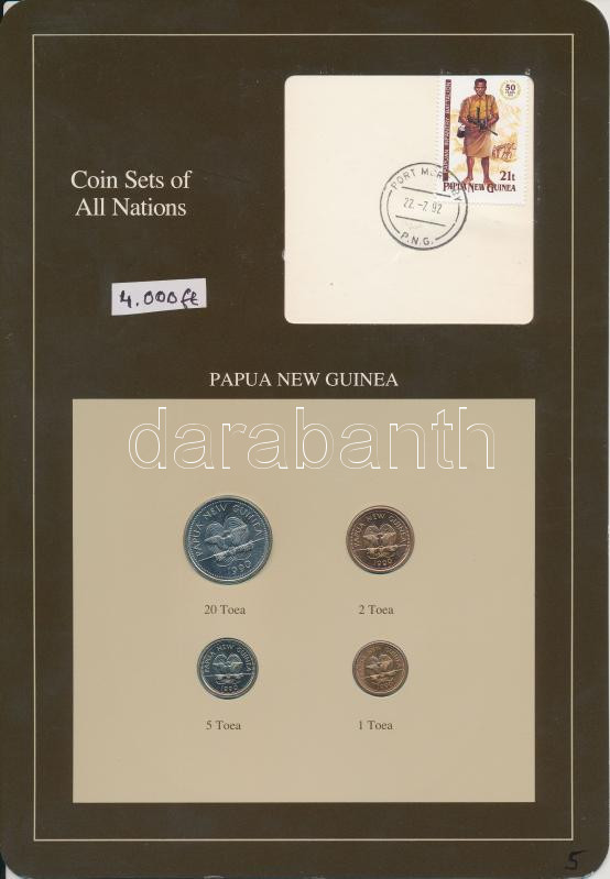 Pápua Új-Guinea 1990. 1T-20T 4xklf db, forgalmi szett felbélyegzett k... https://www.darabanth.com/de/260-Fernauktion/260.0/Numismatik/Weltweit-Munzen~300020/Papua-Uj-Guinea-1990-1T-20T-4xklf-db-forgalmi-szett-felbelyegzett-kartonlapon-T1--Papua-New-G~II1283858