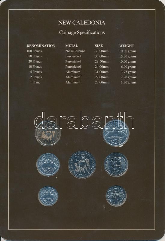 Új-Kaledónia 1985-1991. 1Fr - 100Fr 7xklf db, forgalmi szett felbélyeg... https://www.darabanth.com/de/260-Fernauktion/260.0/Numismatik/Weltweit-Munzen~300020/Uj-Kaledonia-1985-1991-1Fr--100Fr-7xklf-db-forgalmi-szett-felbelyegzett-kartonlapon-T1--New-C~II1284522