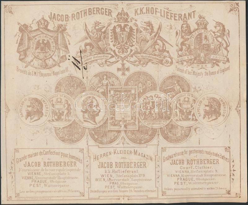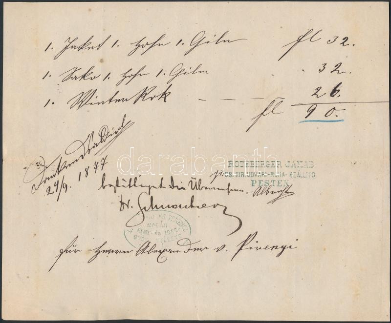 1877 Bp., V. Rothberger Jakab ruhaüzlet grafikus számla https://www.darabanth.com/de/261-Fernauktion/261.0/Andere-Sammelgebiete/Drucksachen~29/1877-Bp-V-Rothberger-Jakab-ruhauzlet-grafikus-szamla~II1263644