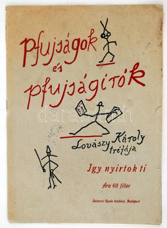 1912 Pfujságok és pfujságírók. Így nyírtok ti. Lovászy Károly tréfája. Bp. - Békéscsaba, Galantai Gyula - Tevan. Első kiadás! Enyhén foltos lapokkal, a borítója elválik, egyébként jó állapotban.