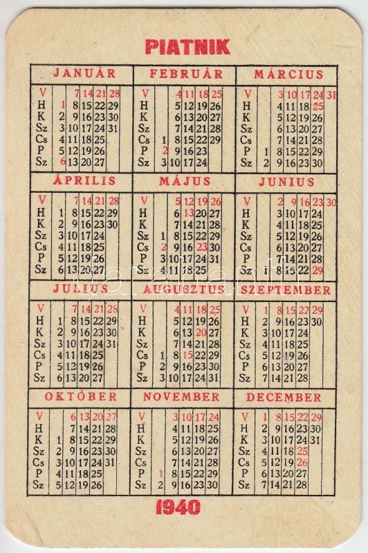 1940 "BUÉK The Jolly Joker" Piatnik kártyanaptár https://www.darabanth.com/de/261-Fernauktion/261.0/Andere-Sammelgebiete/Drucksachen~29/1940-BUEK-The-Jolly-Joker-Piatnik-kartyanaptar~II1292777
