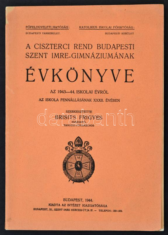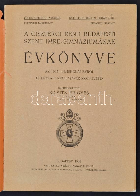 1944 A Ciszterci rend Budapesti Imre-Gimnáziumának évkönyve az 1943-44... https://www.darabanth.com/de/261-Fernauktion/261.0/Andere-Sammelgebiete/Drucksachen~29/1944-A-Ciszterci-rend-Budapesti-Imre-Gimnaziumanak-evkonyve-az-1943-44-evrol-pp79-24x17cm~II1267248