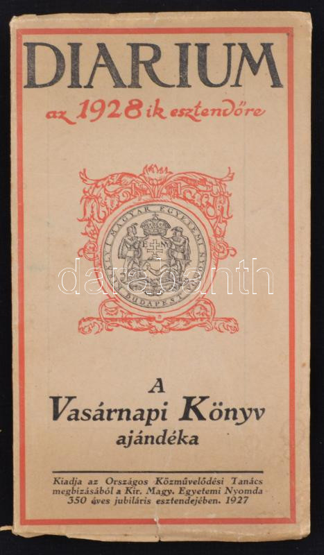 Diárium azaz előjegyzési naptár az 1928-ik esztendőre. Bp., 1927, KMEN... https://www.darabanth.com/de/261-Fernauktion/261.0/Andere-Sammelgebiete/Drucksachen~29/Diarium-azaz-elojegyzesi-naptar-az-1928-ik-esztendore-Bp-1927-KMENy-160-p-Kiadoi-papirb~II1258759