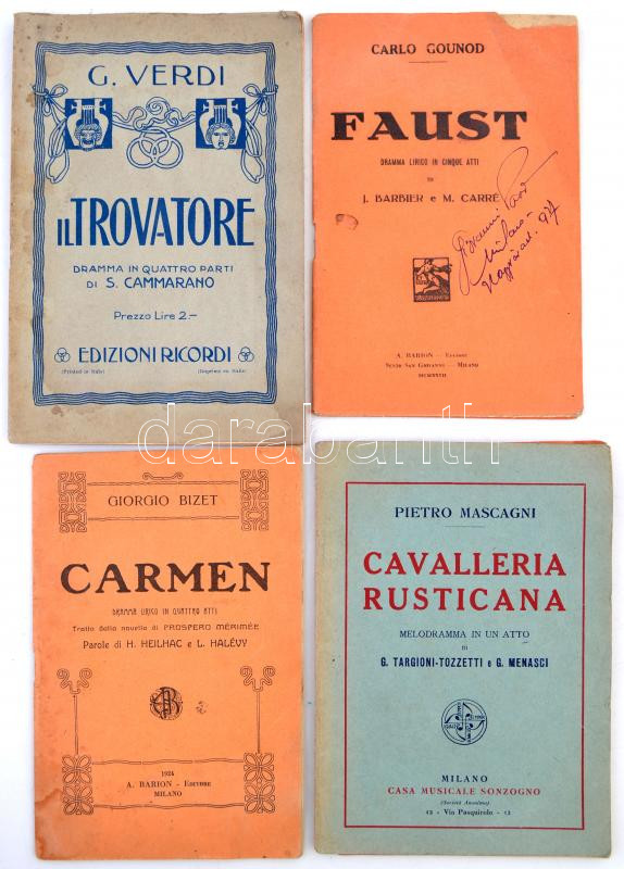 Beschreibung: cca 1924 5 db operafüzet(Il Trovatore, Carmen, Rigoletto, Cavalleria rusticana, Faust)