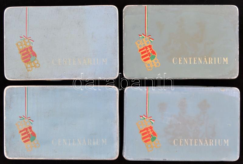 Beschreibung: 4 db Magyar Dohányjövedék szivarkás pléhdoboz, "1848-1948 centenárium" felirattal, kopásnyomokkal, 11,5×7,5×1,5 cm