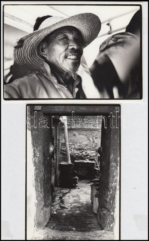 Beschreibung: Szirányi István: Kínai életképek, pecséttel jelzett, feliratozott művészfotók, 2 db, 17,5x12 cm