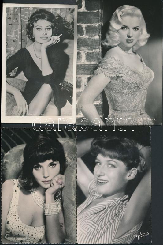 Beschreibung: Vegyes külföldi színésznő fotólapok: Brigitte Bardot, Sophia Loren, Catherine Sauvage, Elsa Martinelli, Diana Dors, 5db, vegyes minőségben, 9x14cm