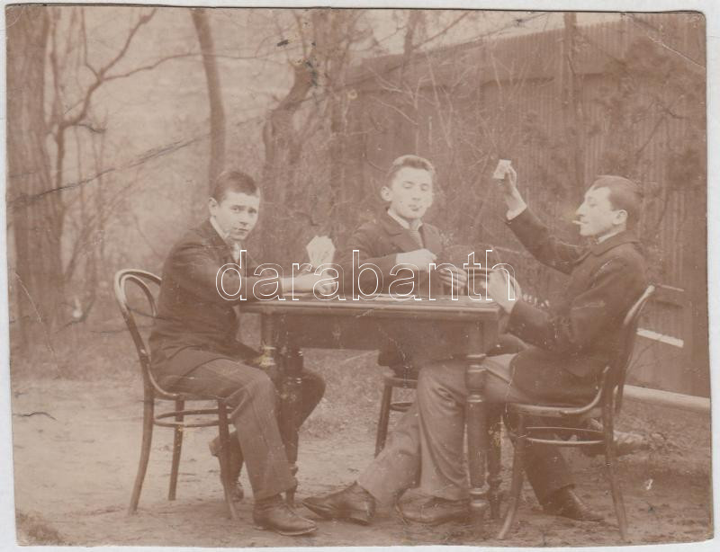 cca 1900 Kártyázó fiatalok, felületén törésnyommal, 12x15 cm https://www.darabanth.com/de/261-Fernauktion/261.0/Andere-Sammelgebiete/Foto~18/cca-1900-Kartyazo-fiatalok-feluleten-toresnyommal-12x15-cm~II1291148