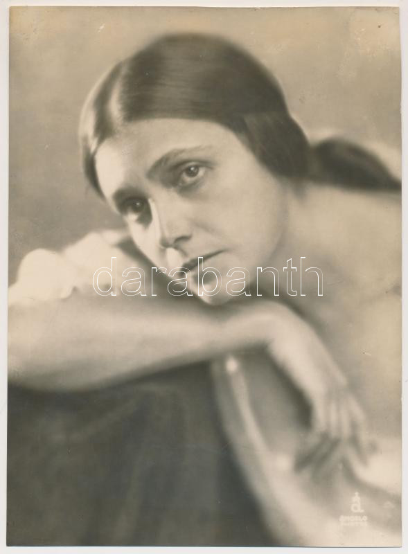 cca 1932 Varsányi Irén (1876-1932) színésznő vintage portréja Angelo műterméből, pecséttel jelzett, + hozzáadva a Pesti Napló egy lapját, ahol a kép megjelent, 22,5x16 cm