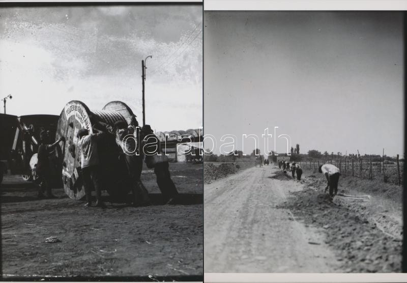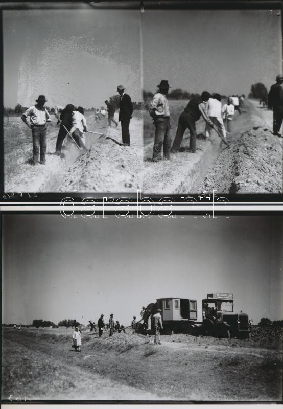 cca 1933 Lakihegyi rádió adótoronyhoz vezető földkábelt fekteti a Magyar Posta, Kerny István (1879-1963) hagyatékában levő 13 db üveglemez negatív modern nagyítása, 13x18 cm