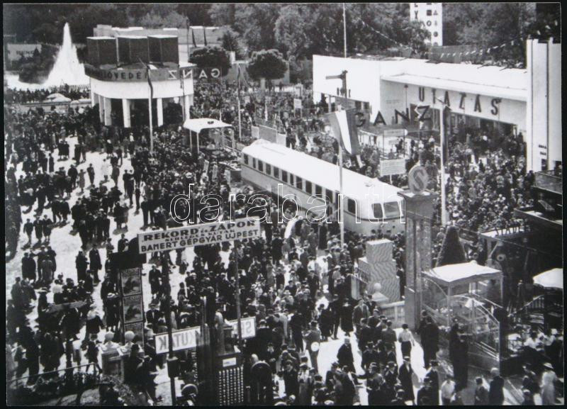 cca 1939 Budapest, Gyorssín-autóbusz a Ganz terméke, kiállítva a Budapesti Nemzetközi Vásáron, Fekete György (1904-1990) budapesti fényképész hagyatékában levő -vélhetően repró - negatív modern nagyítása, 10x15 cm
