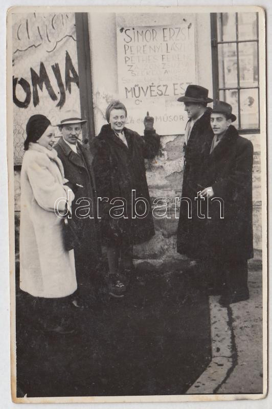 cca 1940 "Budapesti filmművészek nagy művészestje" fotón az est fellépői: Simor Erzsi, Perényi László, Pethes Ferenc, László Imre, Zajzon Zsuzsa, 9x14cm