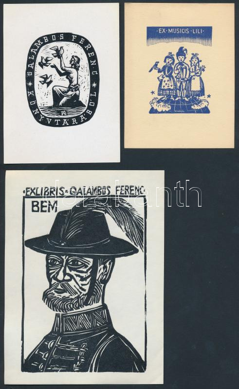 Beschreibung: 7 db ex libris, klisé, fa metszet, 4 db jelzett (Vadász, Fery, Drahos R.R), 6×4-12×8 cm