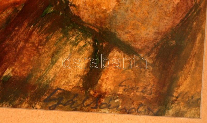 Beschreibung: Gál Sándor (1898-1979): Kertben. Pasztell, papír, jelzett, üvegezett keretben, 40×60 cm