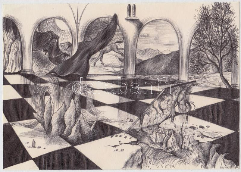 Beschreibung: Jelzés nélkül: Szellemek a túlvilágról. Toll, papír, 15x21 cm