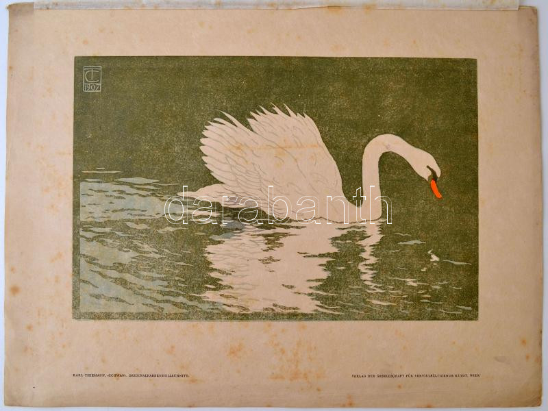 Karl Thiemann (1881-1966): Hattyú. Színezett linó, papír, kiadta "... https://www.darabanth.com/de/261-Fernauktion/261.0/Andere-Sammelgebiete/Gemalde-und-Grafiken~400099/Karl-Thiemann-1881-1966-Hattyu-Szinezett-lino-papir-kiadta-Der-gesellchaft-fur-Vervielf~II1290958
