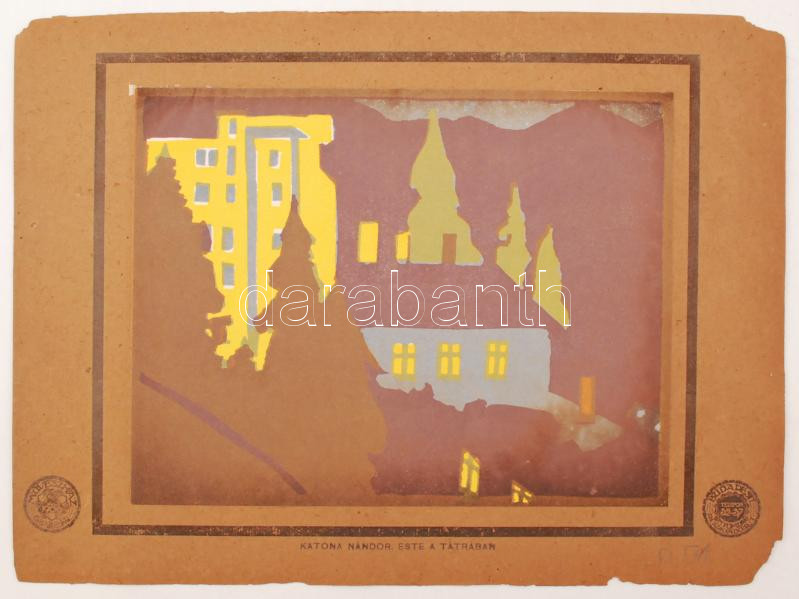 Katona Nándor (1864 - 1932): Este a Tátrában. Színes linómetszet, papí... https://www.darabanth.com/de/261-Fernauktion/261.0/Andere-Sammelgebiete/Gemalde-und-Grafiken~400099/Katona-Nandor-1864--1932-Este-a-Tatraban-Szines-linometszet-papir--megjelent-a-Modern-M~II1290641