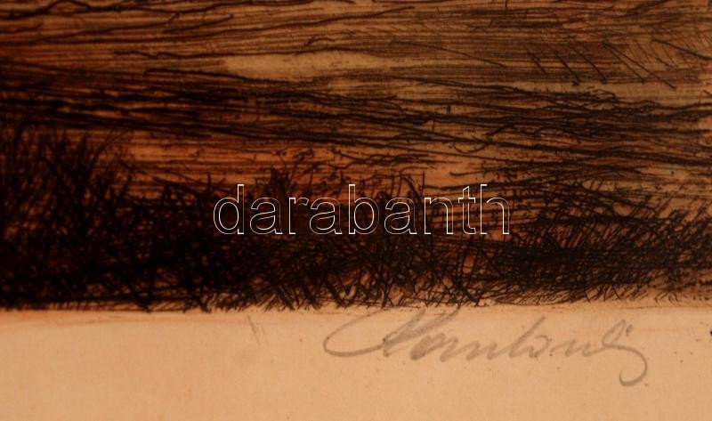 Beschreibung: Paulovits Pál (1892-1975): Keresztútnál. Rézkarc, papír, jelzett, Üvegezett keretben, 26×34 cm