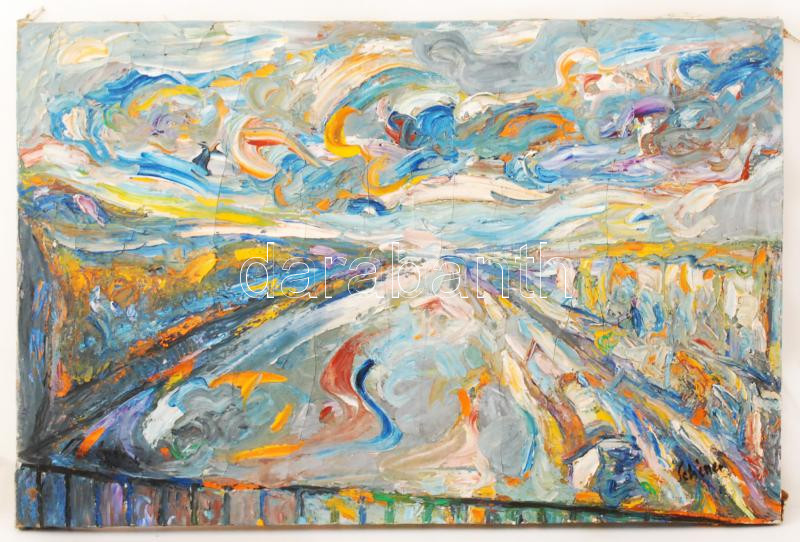 Beschreibung: Schéner jelzéssel: Kilátás a hídról. Olaj, vászon, 45×69 cm