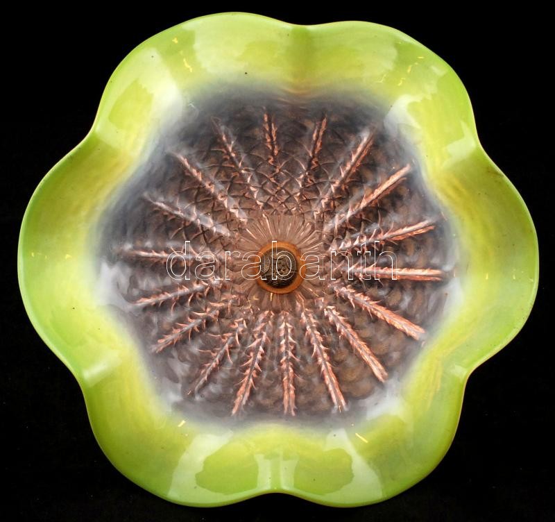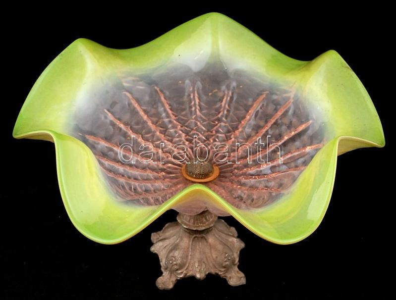 Díszes fémtalpas hullámos festett üveg kínáló, jelzés nélkül, apró kop... https://www.darabanth.com/de/261-Fernauktion/261.0/Andere-Sammelgebiete/Glaser~7/Diszes-femtalpas-hullamos-festett-uveg-kinalo-jelzes-nelkul-apro-kopasnyomokkal-d-31~II1238094