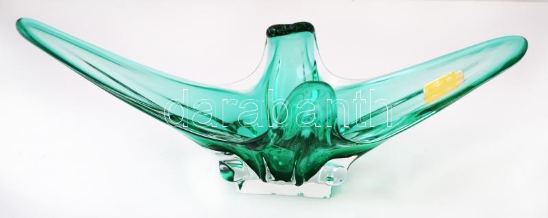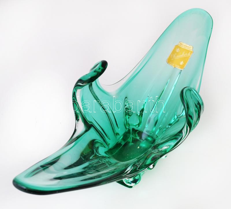 Beschreibung: Muránói dísztál, jelzett (Chambord Flli Toso), anyagában színezett, hibátlan, m:17 cm, h:48 cm
