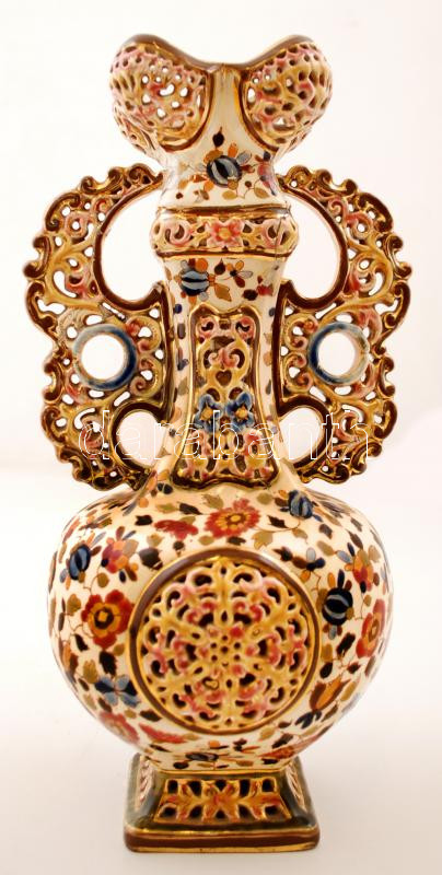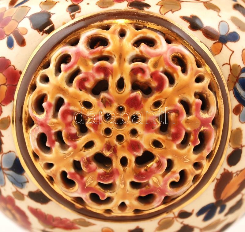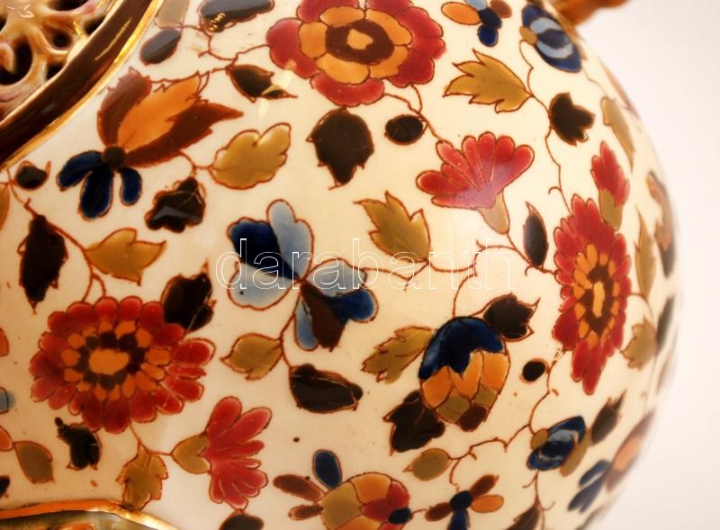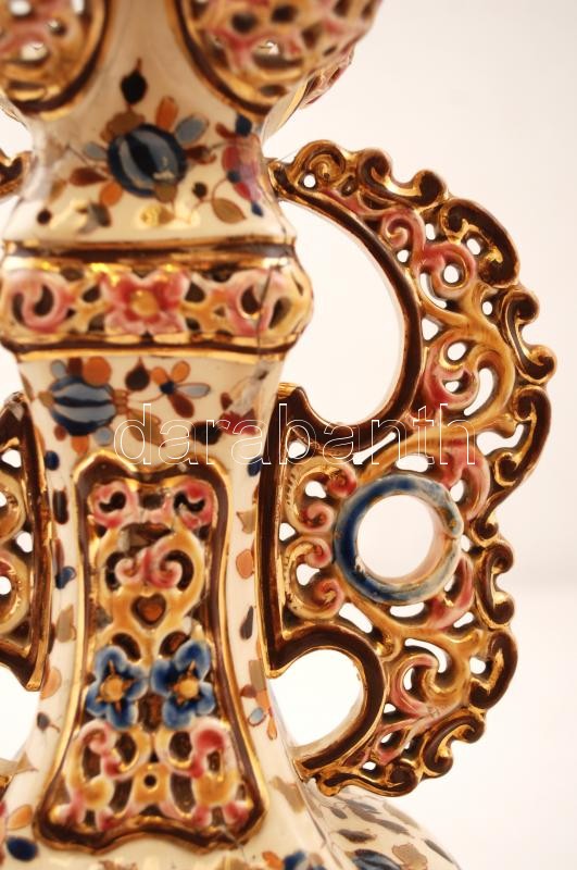 Beschreibung: Josef Steirl Znaim virágmintás kerámia váza, kézzel festett, jelzett, sérült, m: 31 cm