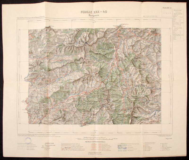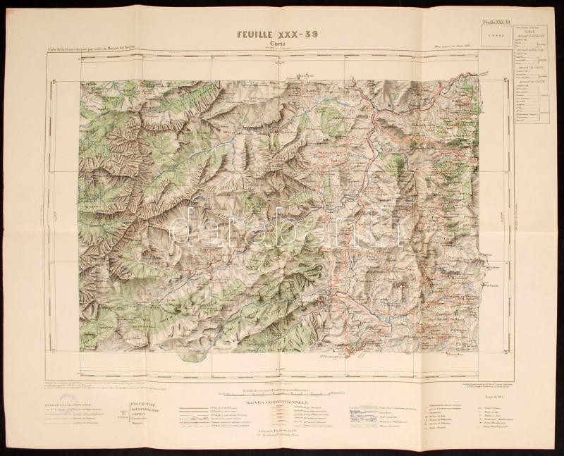 Beschreibung: 1908-1911 3 db francia nyelvű Korzika-térkép: Zicavo, Bocoquano, Corte, 1:100000, különböző méretben