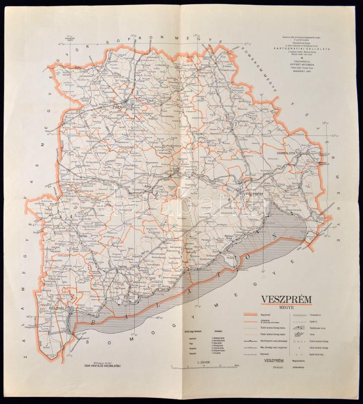 1957 Veszprém megye térképe, "Csak hivatalos használatra", 4... https://www.darabanth.com/de/261-Fernauktion/261.0/Andere-Sammelgebiete/Landkarten~25/1957-Veszprem-megye-terkepe-Csak-hivatalos-hasznalatra-48x42cm~II1288041