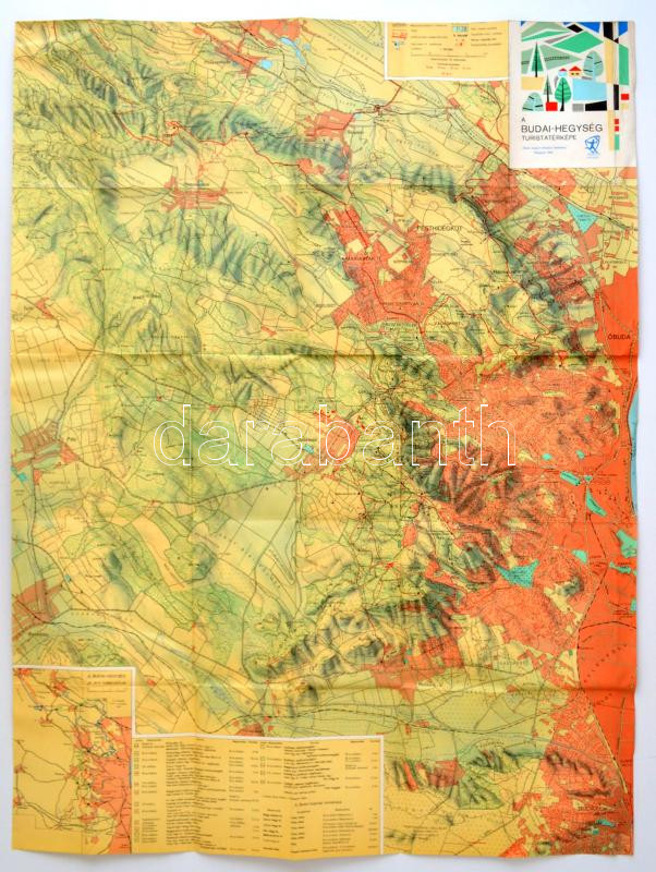 1965-1966 2 db Budapesthez kapcsolódó térkép: Budapest belső területe; A Budai-hegység turistatérképe, példányonként változó, nagyrészt jó állapotban, különböző méretben