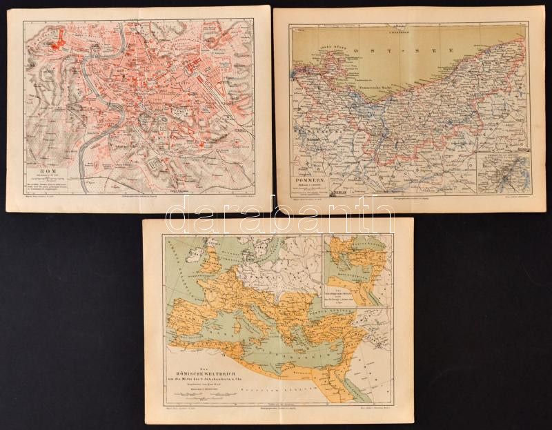 Beschreibung: cca 1890 Német Birodalmi térkép, Meyers Konv. -Lexikon, 4 aufl., 5db, 24x30cm