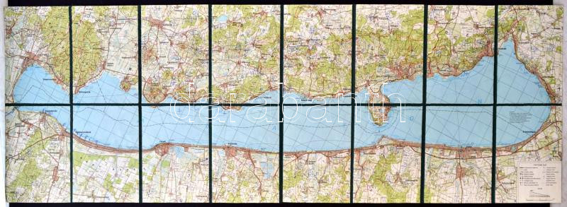 Beschreibung: cca 1980 Balaton turistatérképe vászonra kasírozva,1:80000, sok tintás jelzéssel, a fedőlap pótolt, 36x102cm
