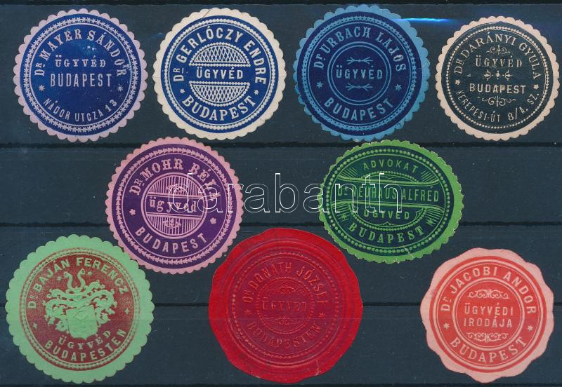 Beschreibung: Budapesti ügyvédek 9 db klf pecsétbélyeg