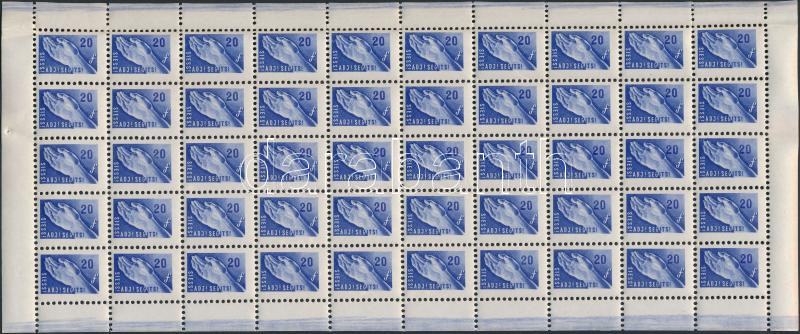 Beschreibung: Siess, adj, segíts 20f segélybélyeg 50-es teljes ívben