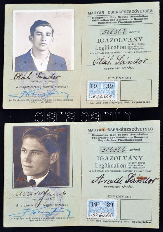 cca 1930 2 db cserkész igazolvány / 2 scout id s https://www.darabanth.com/de/261-Fernauktion/261.0/Andere-Sammelgebiete/Pfadfinder~23/cca-1930-2-db-cserkesz-igazolvany-2-scout-id-s~II1297174