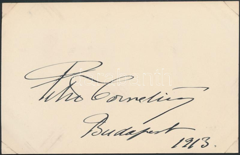 1913 Peter Cornelius (1865-1935) dán származású operaénekes sajátkezű ... https://www.darabanth.com/de/261-Fernauktion/261.0/Andere-Sammelgebiete/Signatur~17/1913-Peter-Cornelius-1865-1935-dan-szarmazasu-operaenekes-sajatkezu-alairasa~II1295523