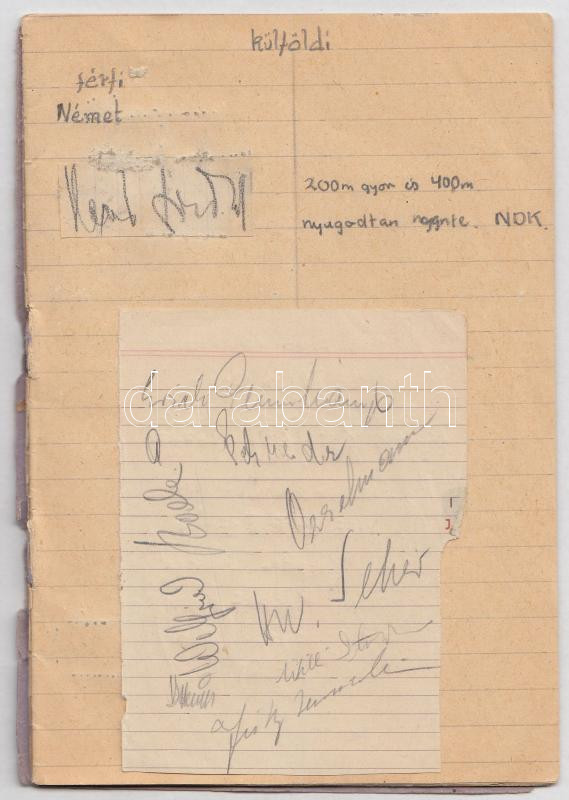 saját kezű aláírások kivágáson, füzetbe ragasztva, cca 30db ( pl.:Paolo Pucci és még sokan mások)