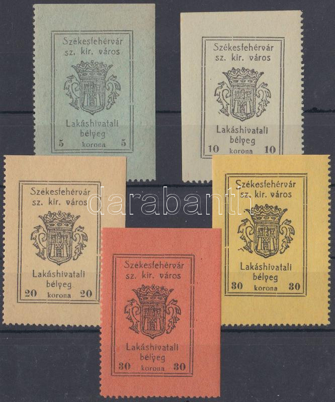 Beschreibung: 1920 5 db klf Székesfehérvár lakáshivatali illetékbélyeg (~34.000)
