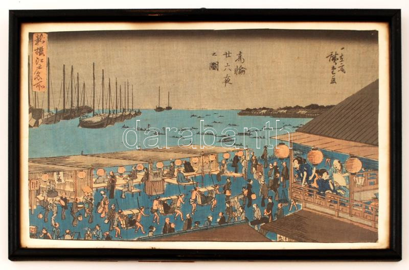 Beschreibung: cca 1900 Jelzett japán színes fametszet, kivágva, üvegezett keretben, 20×33 cm
